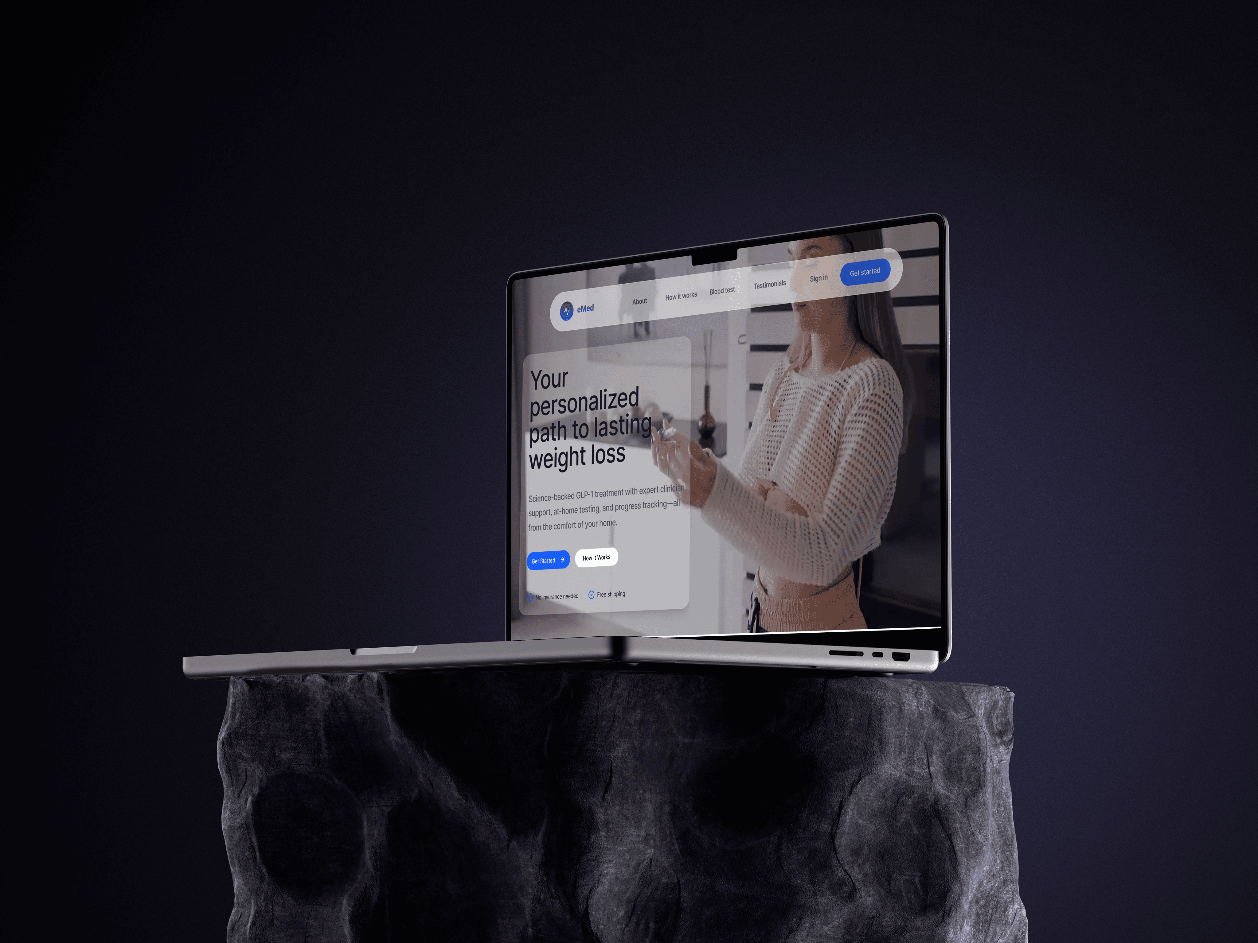 A conversion-focused one-page marketing website designed and built for eMed, a personalized weight loss program featuring FDA-approved medications delivered to patients.